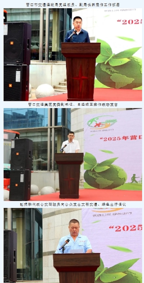 為深入實(shí)施城市公共交通優(yōu)先發(fā)展戰(zhàn)略,鼓勵(lì)引導(dǎo)綠色出行,營(yíng)口市2025年綠色出行宣傳月暨公交出行宣傳周活動(dòng)啟動(dòng)儀式在營(yíng)口交運(yùn)集團(tuán)汽車客運(yùn)站南廣場(chǎng)舉行。市交通運(yùn)輸局、市總工會(huì)、市機(jī)關(guān)事務(wù)管理服務(wù)中心、市交通運(yùn)輸綜合行政執(zhí)法隊(duì)、市公安局交通安全管理支隊(duì)、共青團(tuán)營(yíng)口市委、市殘聯(lián)、市民政局等相關(guān)部門領(lǐng)導(dǎo)共同出席了儀式。